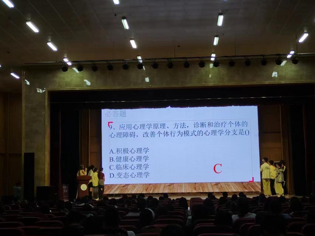 5月25日周四下午,我校大学生心理健康教育中心于图书馆三楼报告厅举办“向心而学,健心而行”大学生心理健康知识竞赛(决赛),同学们博闻强识、欢欣踊跃,现场氛围热烈,亮点不断,达到预期效果。
